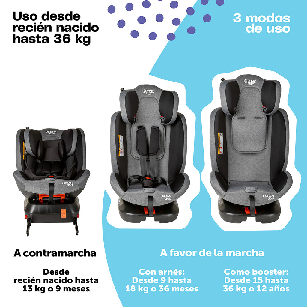 ¡El autoasiento Urban 360 de Cosco Kids acompañará a tu pequeño en cada etapa, desde recién nacido hasta 36 kg, brindando seguridad, confort y practicidad!