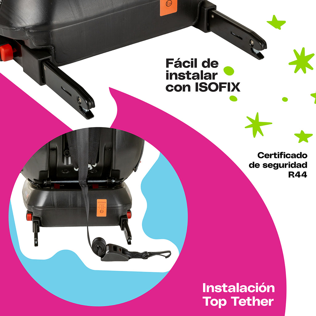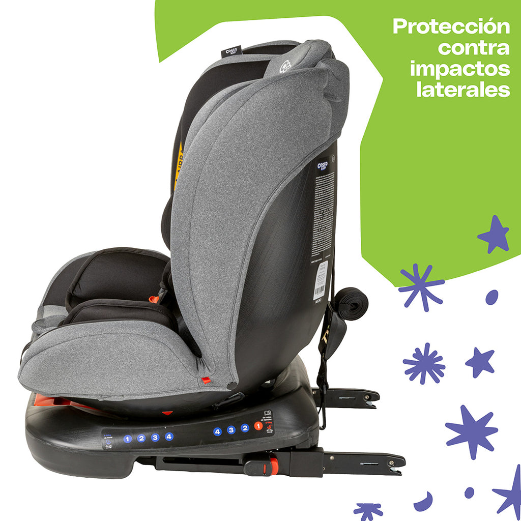 Su innovador sistema de giro 360° facilita enormemente colocar y sacar a tu bebé del coche, transformando los momentos de entrada y salida en experiencias rápidas y sin esfuerzo. Es seguro por su arnés de 5 puntos con protectores de hombros y avanzada protección contra impactos laterales. Además, cuenta con la certificación R44, cumpliendo con estándares de seguridad. Se adapta a las diferentes etapas del crecimiento con 5 posiciones de reclinación (1 a contramarcha y 4 a favor de la marcha), y un reposacabezas con altura ajustable para acompañar su desarrollo. Incluye un reductor acolchado para brindar comodidad y protección a los recién nacidos. Su instalación es sencilla y segura mediante el sistema ISOFIX que asegura un anclaje firme.