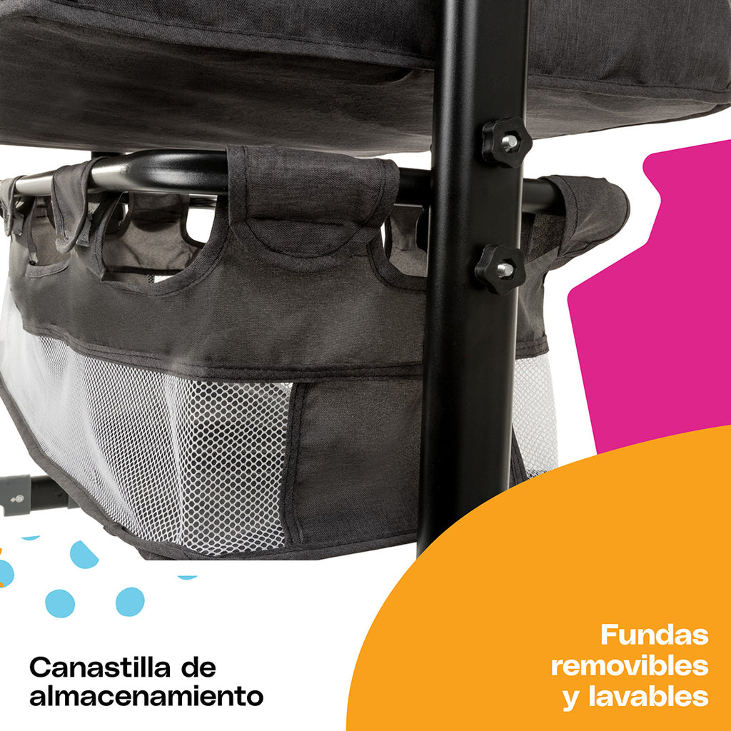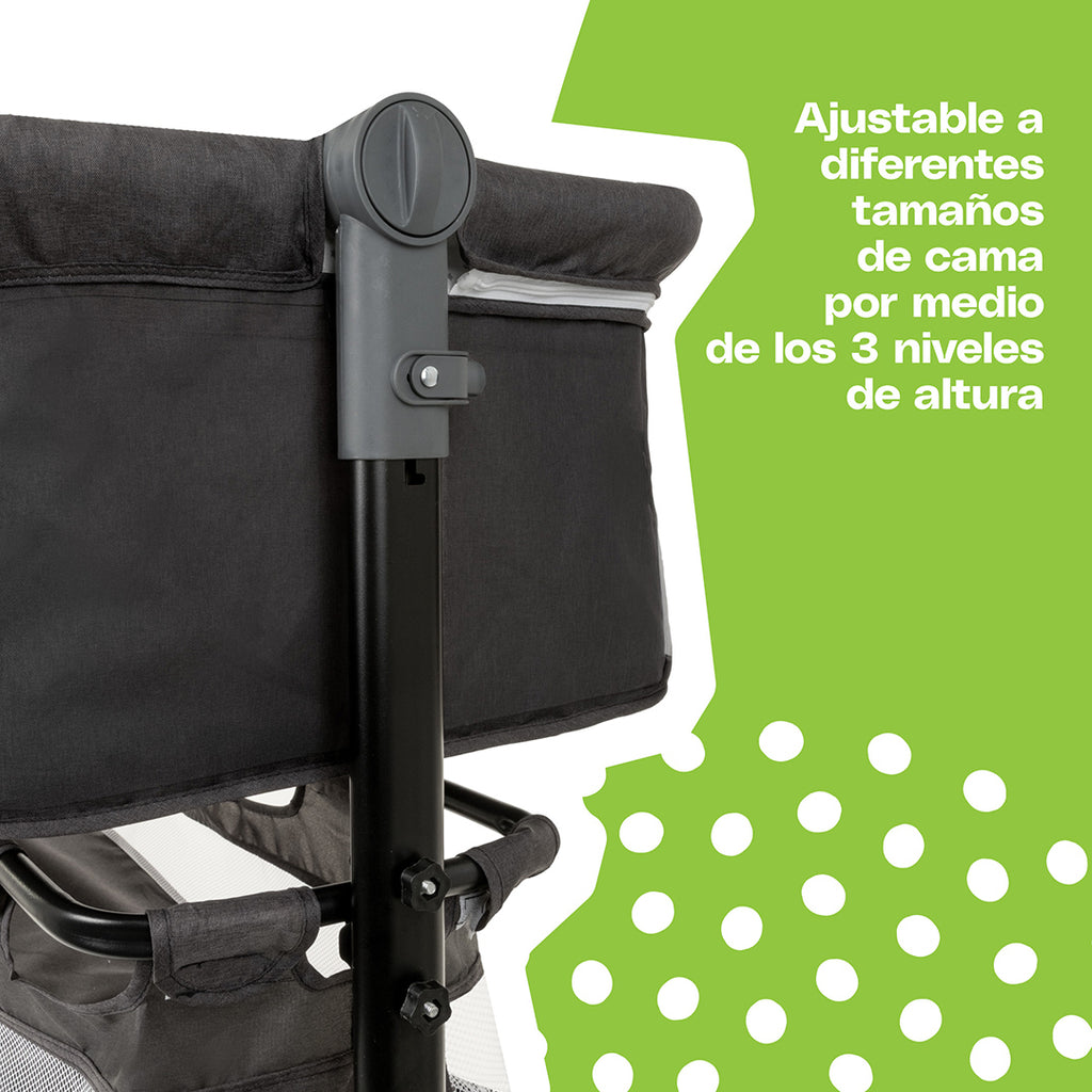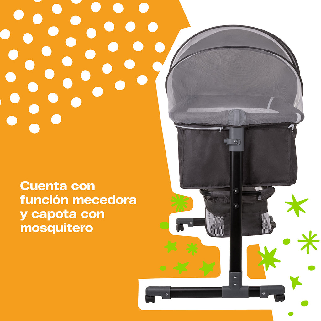 Podrás transportarla fácilmente de una cuarto a otro por medio de sus patas con ruedas. Además, tu bebé estará protegido ya que cuenta con una capota con mosquitero. No hay necesidad de preocuparse por la limpieza ya que sus telas son acolchonadas, removibles y lavables. Su estructura de acero es segura y durable. ¡Ten noches tranquilas y seguras con el colecho Kimmi 3-en-1 de Cosco Kids!