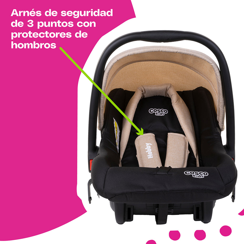 ¡Te encantará el sistema de viaje Hobby de Cosco Kids! Diseñado para acompañar a tu bebé desde el nacimiento hasta los 13 kg en el portabebé y 15 kg en la carriola.